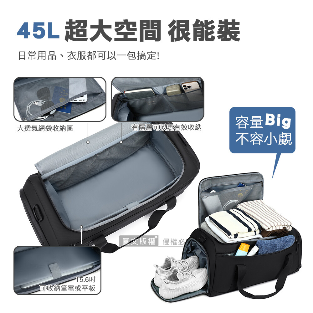 45L超大容量,運動訓練、健身房、外出差旅都可以!