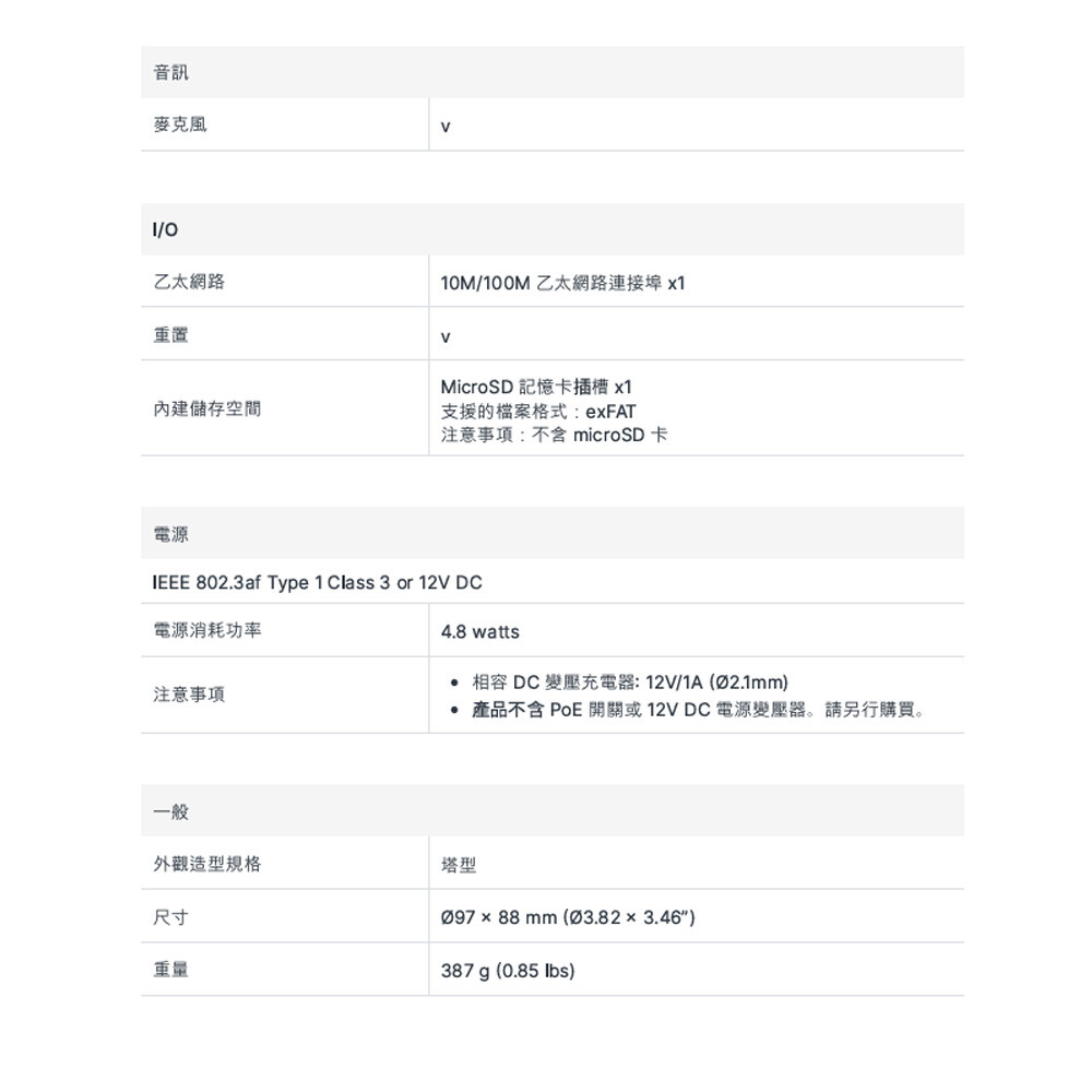 廣角鏡頭搭載 5 MP 感光元件可錄製 30 FPS 影像、透過高功率 IR LED 夜視力可達 30 公尺