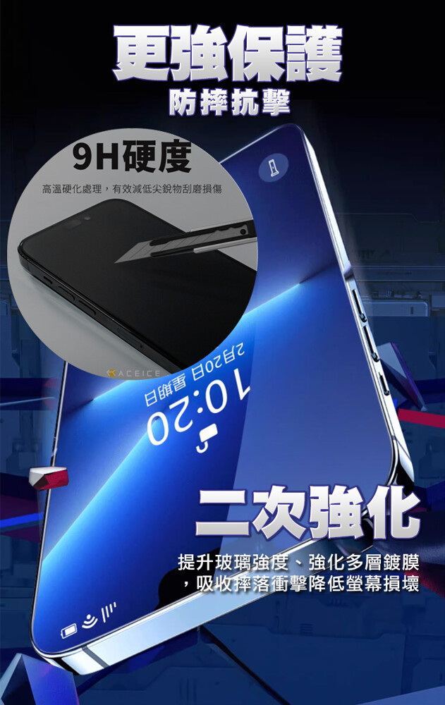 二次強化 提升玻璃硬度 吸收摔落衝擊降低螢幕損壞