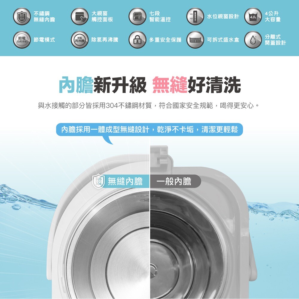304不鏽鋼內膽無縫設計不卡垢