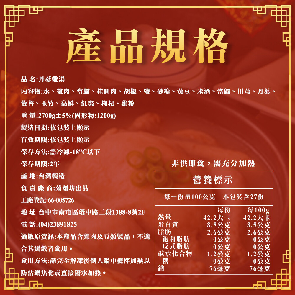 【菊頌坊】丹蔘雞湯(2700g/袋);1/7起依訂單陸續出貨