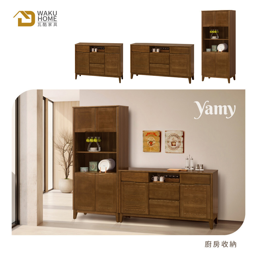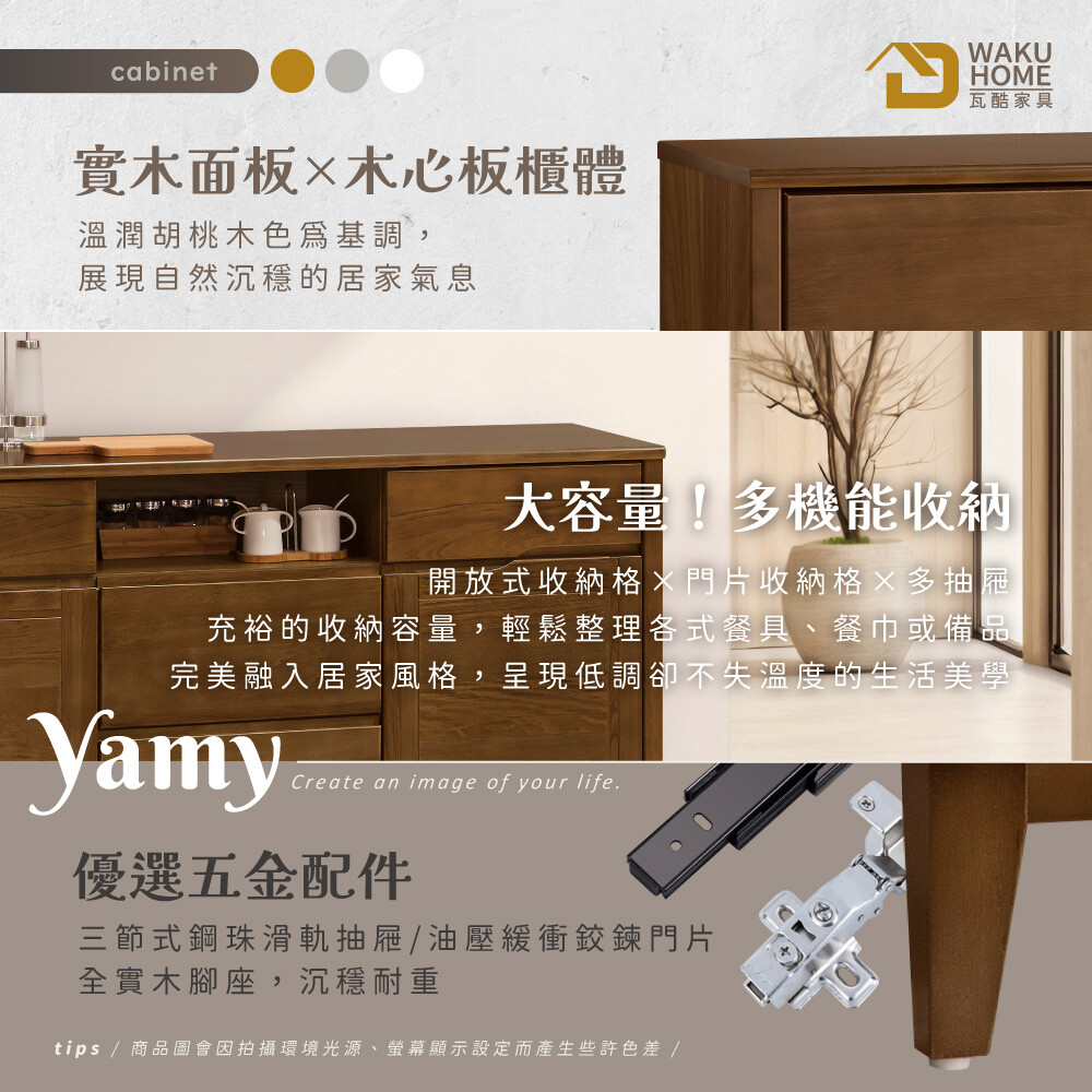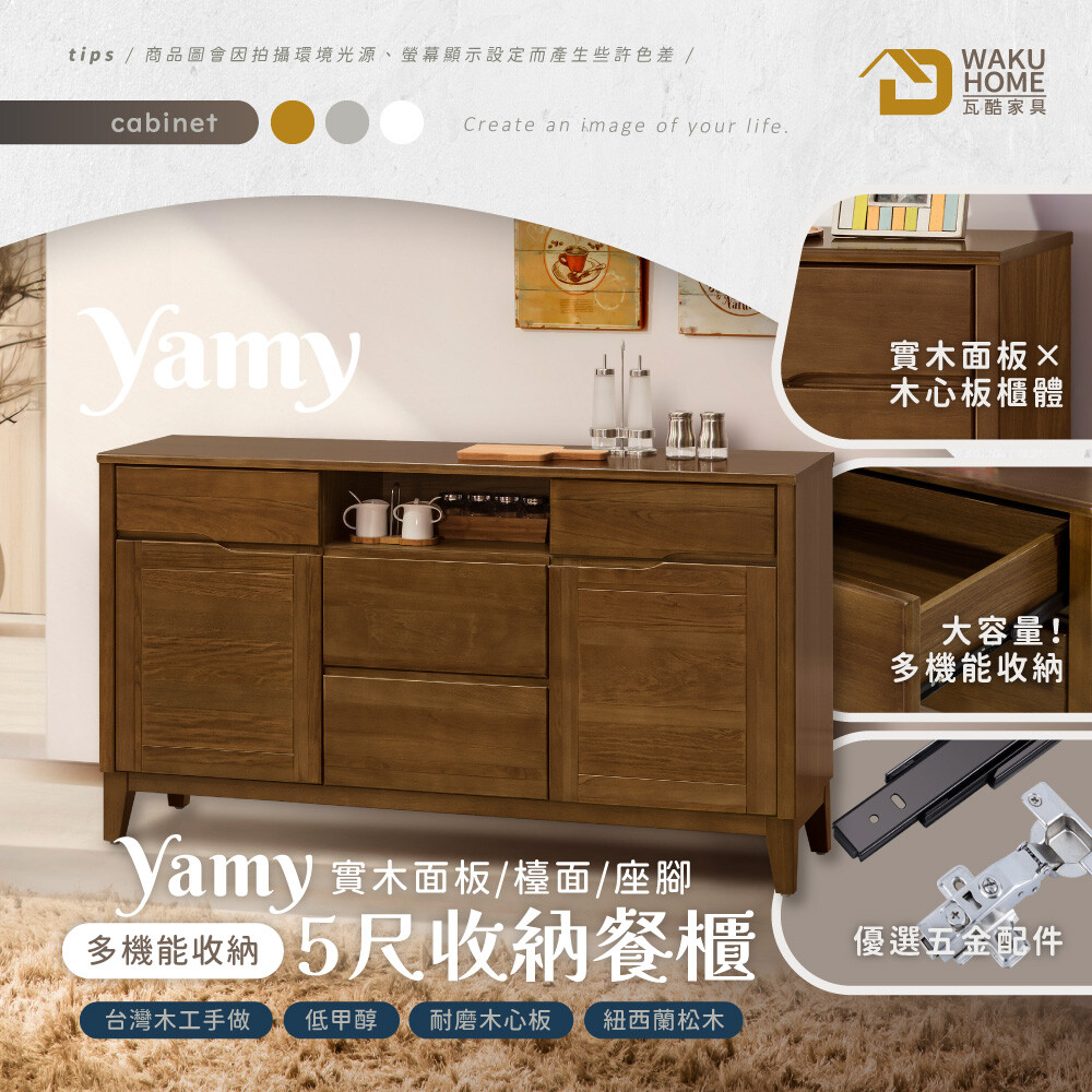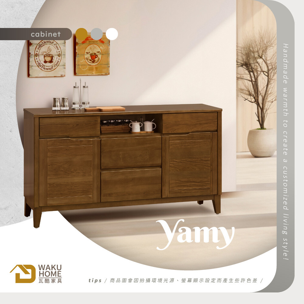 Yamy淺胡桃實木5尺餐櫃 (實木面板/檯面/座腳)A010-546