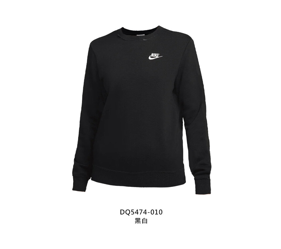 NIKE 女長袖圓領T恤-運動 上衣 休閒 慢跑 黑白