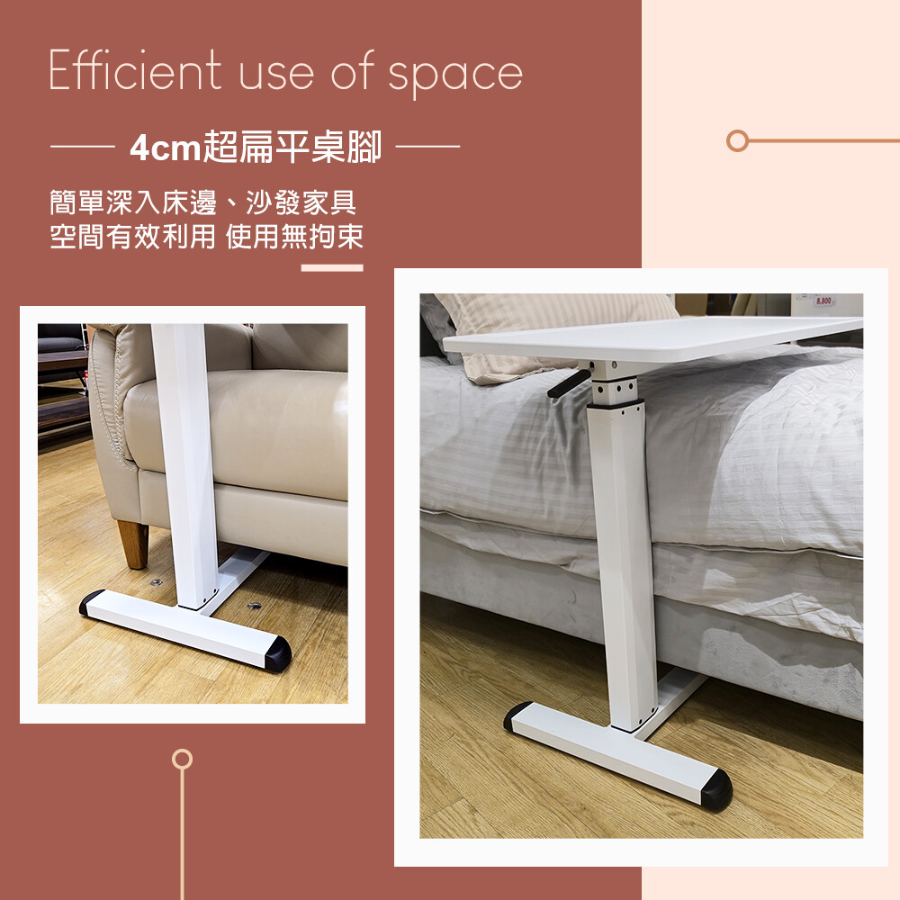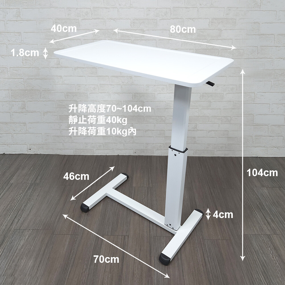 【H&R安室家】台製80X40X1.8cm 氣壓式可移動升降桌 側邊桌 床邊桌 沙發邊桌
