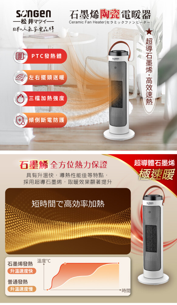加熱類型:PTC陶瓷發熱體+石墨烯塗層