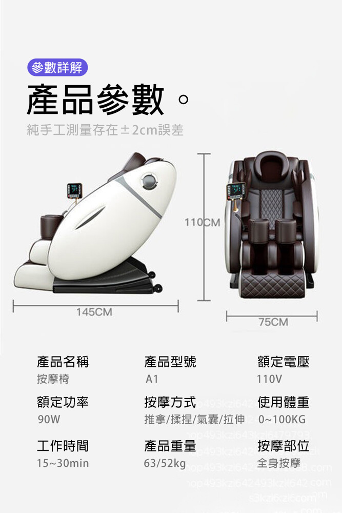 (2)頸部 背部 腰部 22個按摩頭 揉捏 推拿 熱敷
