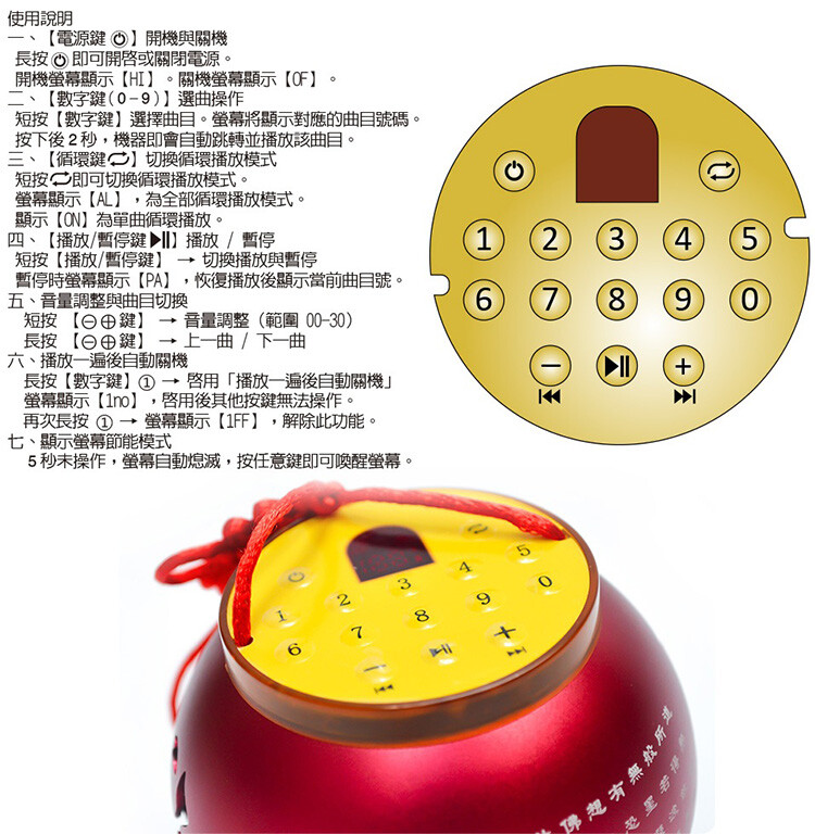 可擺放於佛堂、宮廟、書房或臥室,隨時播放佛音修心。
