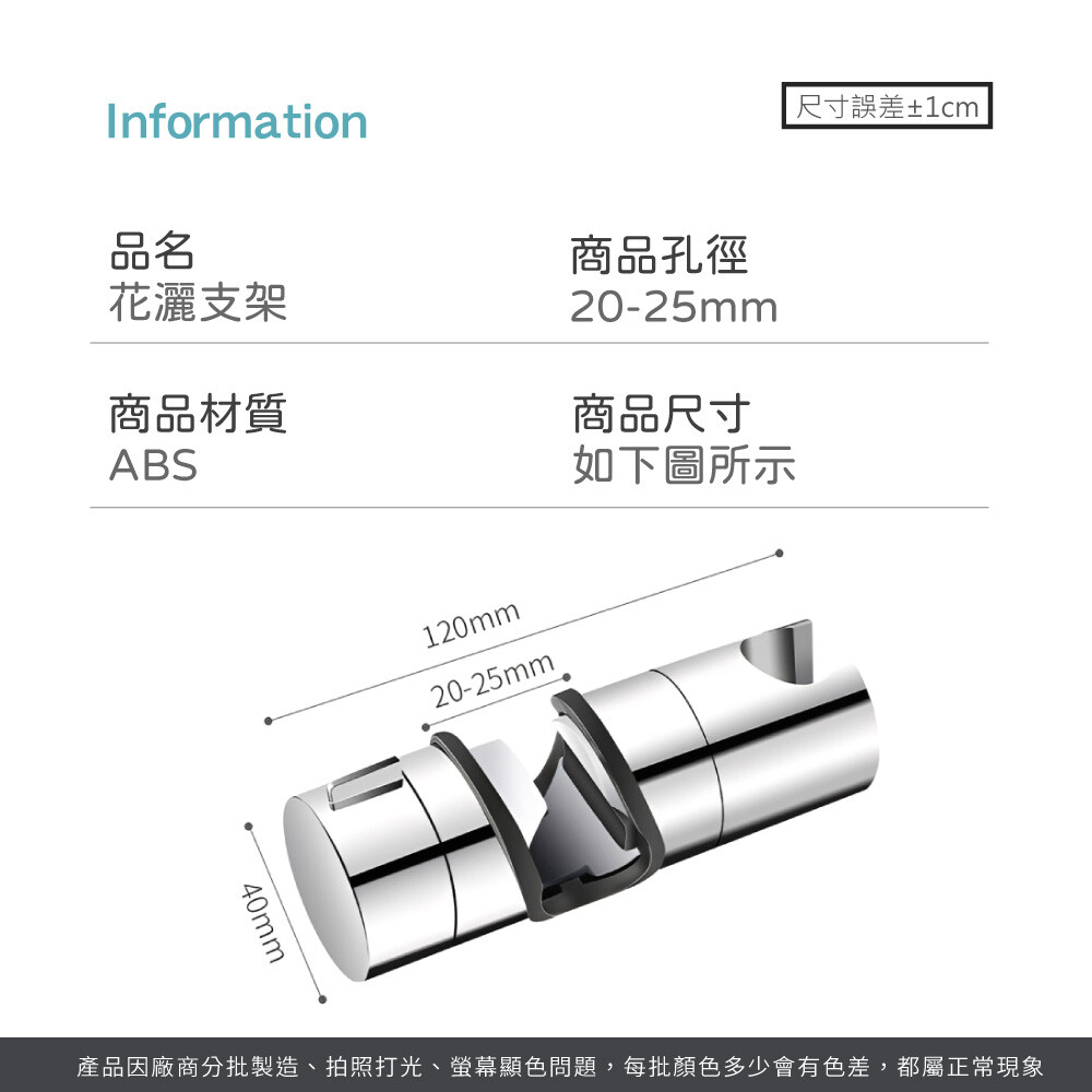 1.適用直徑 20–25mm 花灑桿,多數浴室皆可使用。