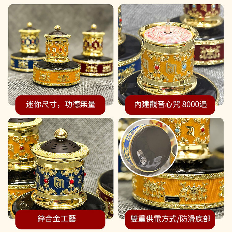然而,現代生活繁忙,不是每位信眾都有時間或體力長久持咒。這時候,一座設計精巧的 電動轉經輪,便能幫助您隨時隨地持續累積福德。