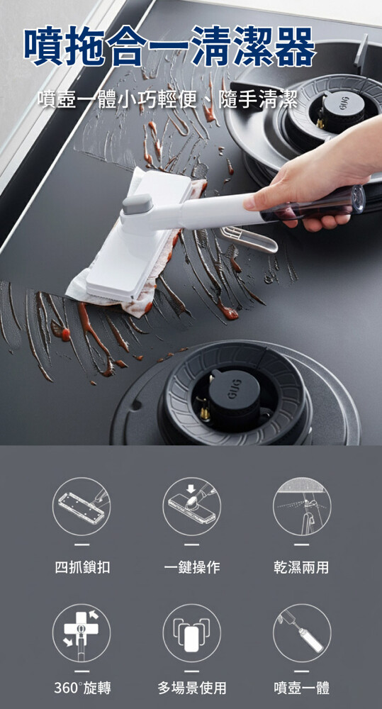 ● 噴壺一體,一噴一拖超乾淨