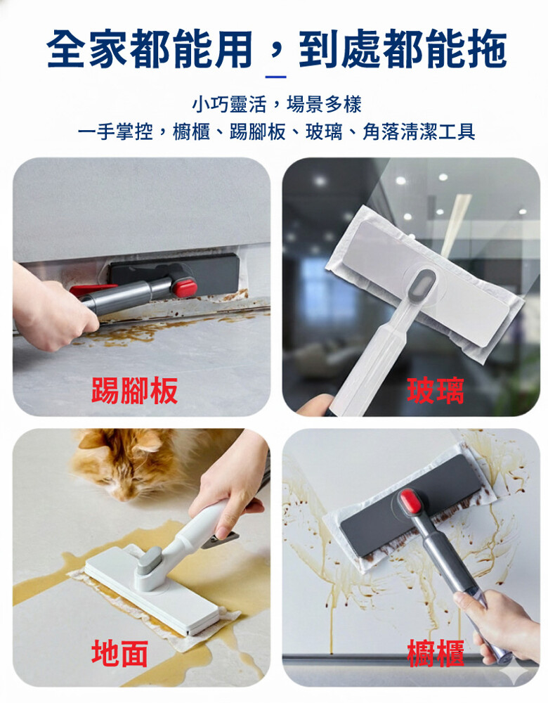 ● 360∘旋轉拖把頭,橫豎隨心轉