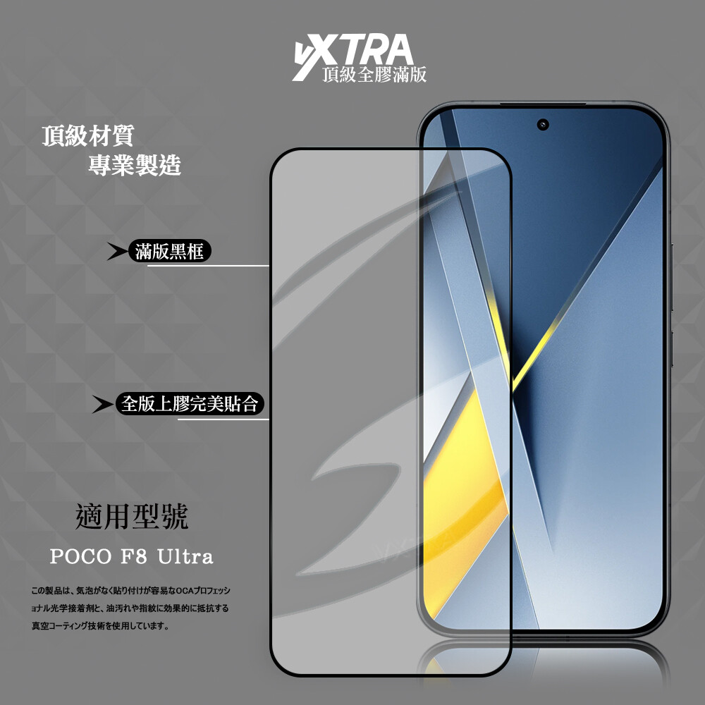 商 品:疏水疏油9H鋼化玻璃膜(滿版-黑) POCO F8 Ultra