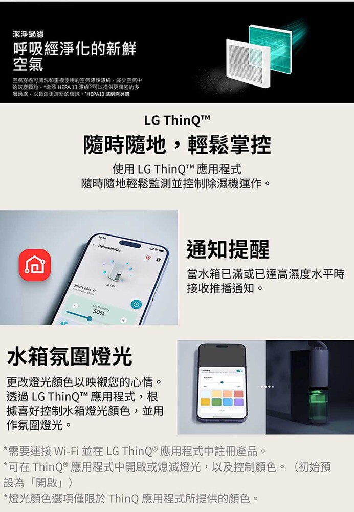 30項安全裝置 | WiFi遠控功能 | 12公升/日除濕量