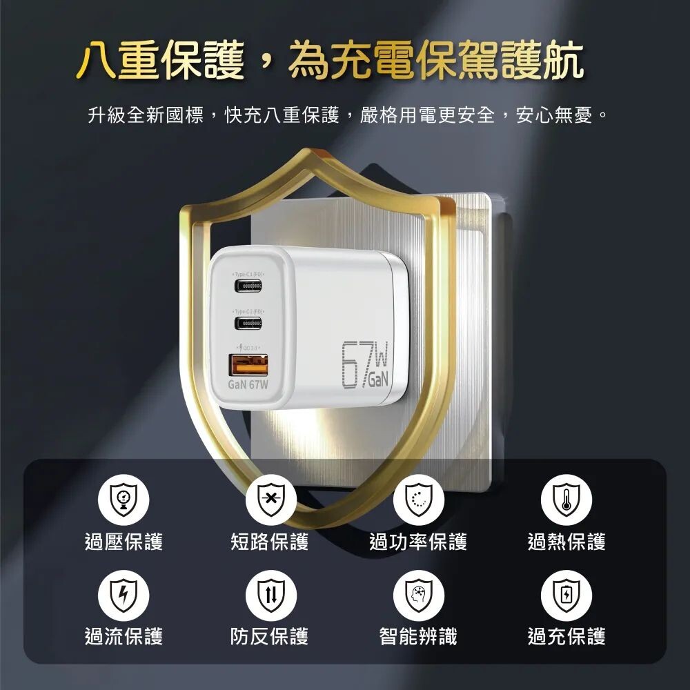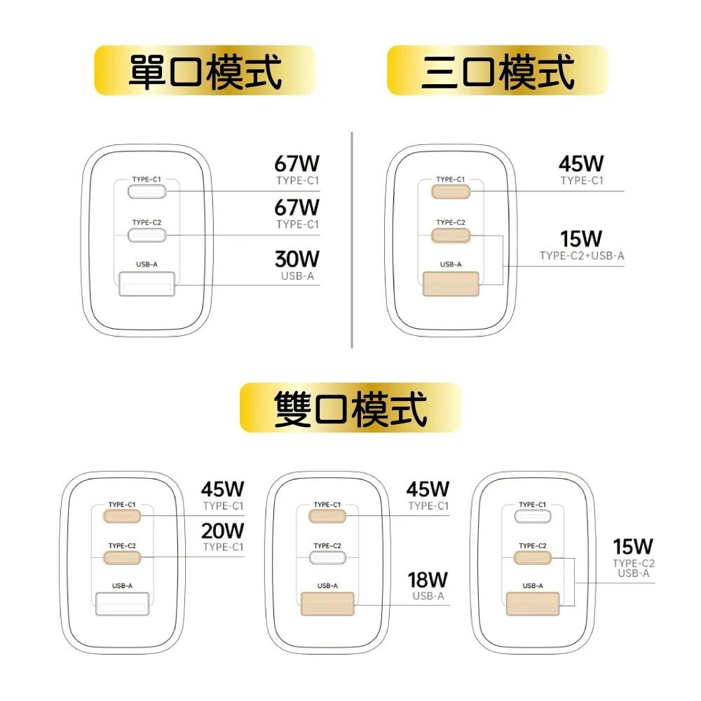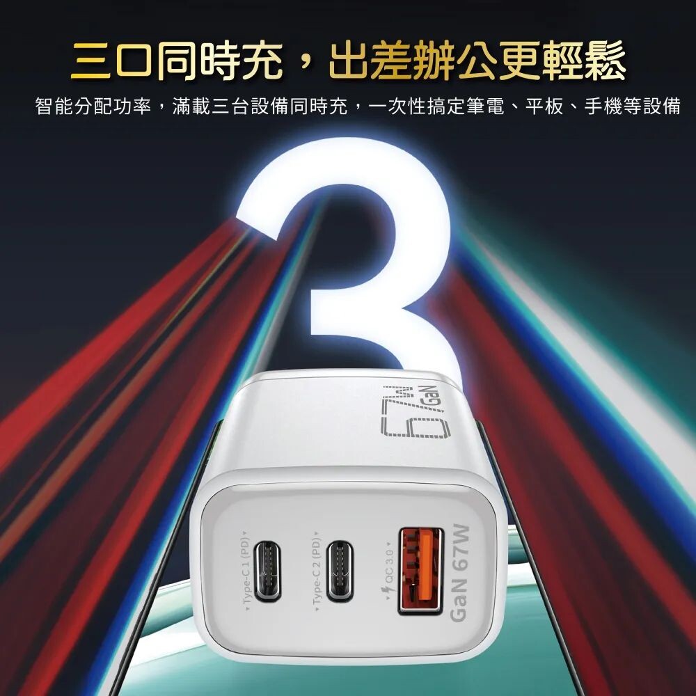品名:67W 氮化鎵GaN 三孔旅充頭