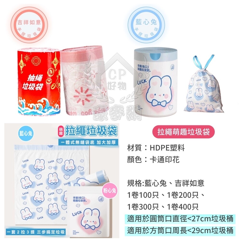 ☆【手提垃圾袋】50入50*45cm抽繩式垃圾袋 拉繩式塑膠袋 萌趣藍心兔手提收口垃圾袋☆