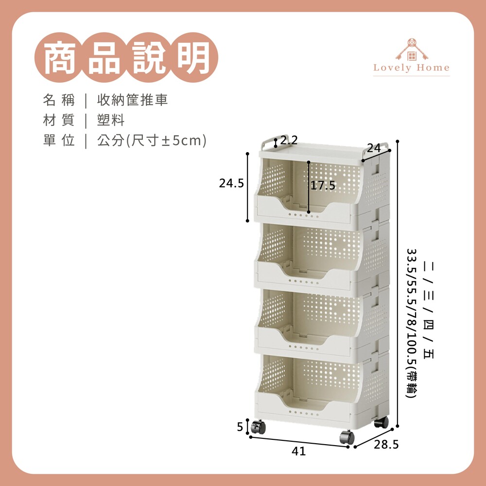 名稱:收納筐推車【五層】