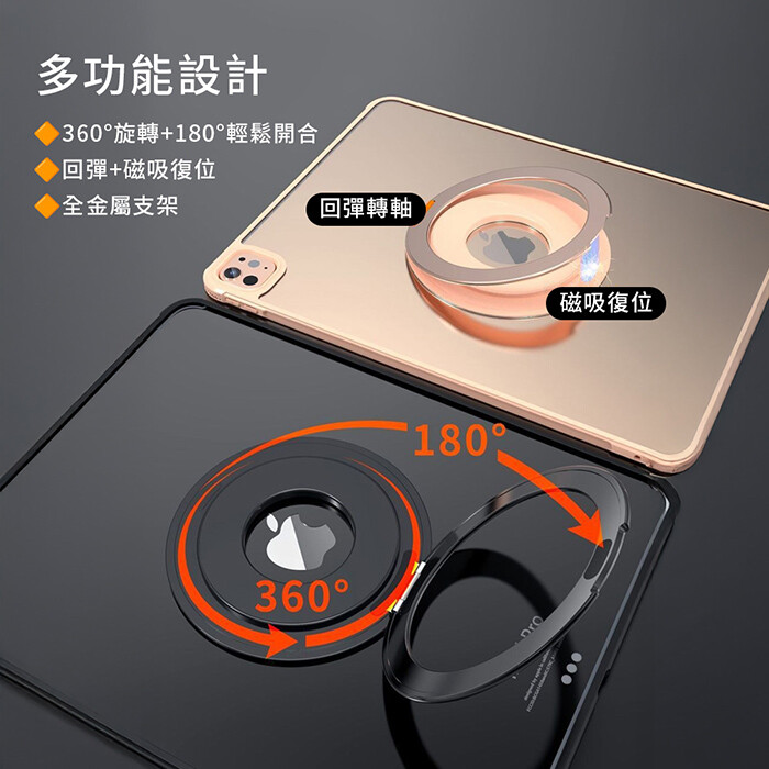 ➣回彈轉軸+磁吸復位,180°輕鬆開合