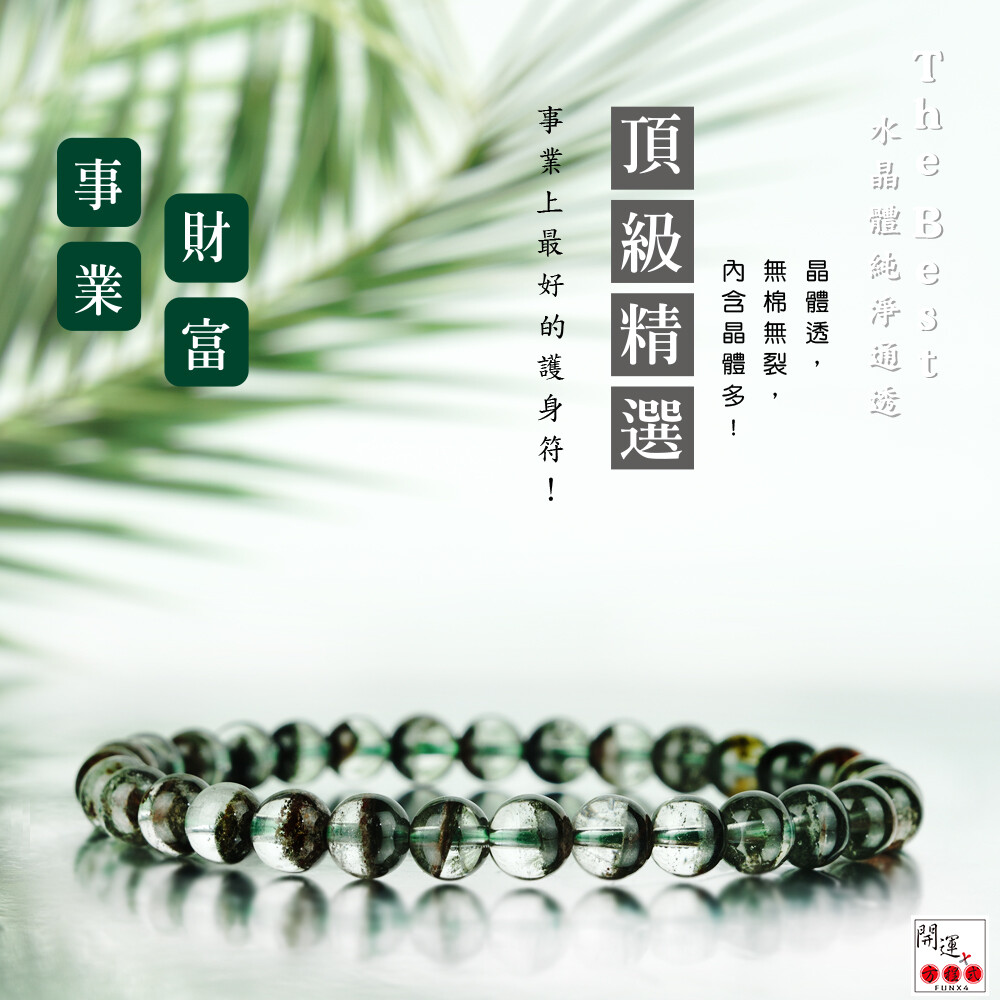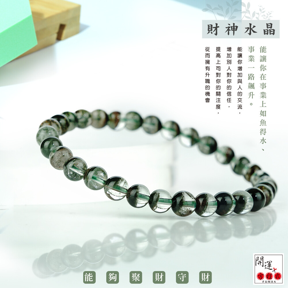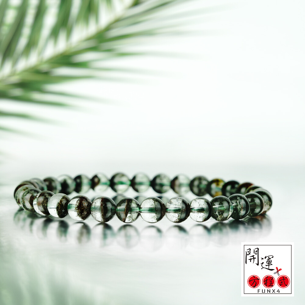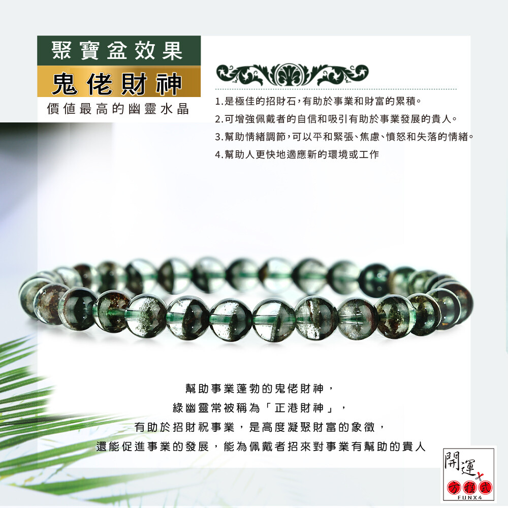 綠色位於光譜中間,最平衡的顏色,壓力大時可以運用配戴綠幽靈達到放鬆心情,綠色對應脈輪第四輪"心輪",對於心、肺、淋巴腺等有療癒的能量作用。