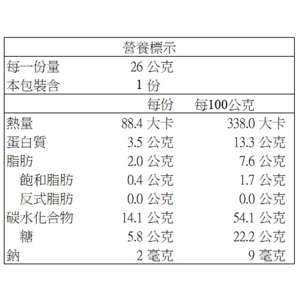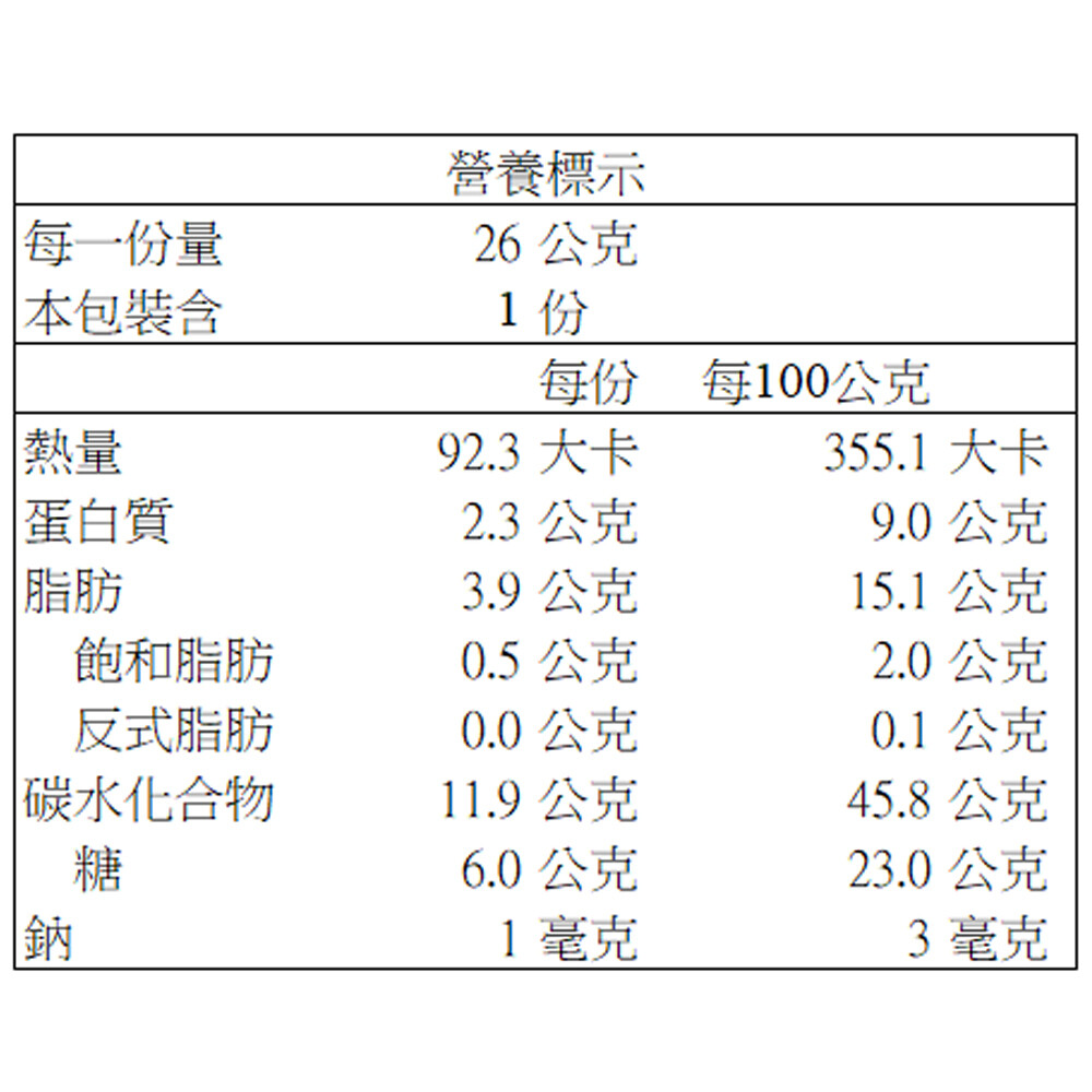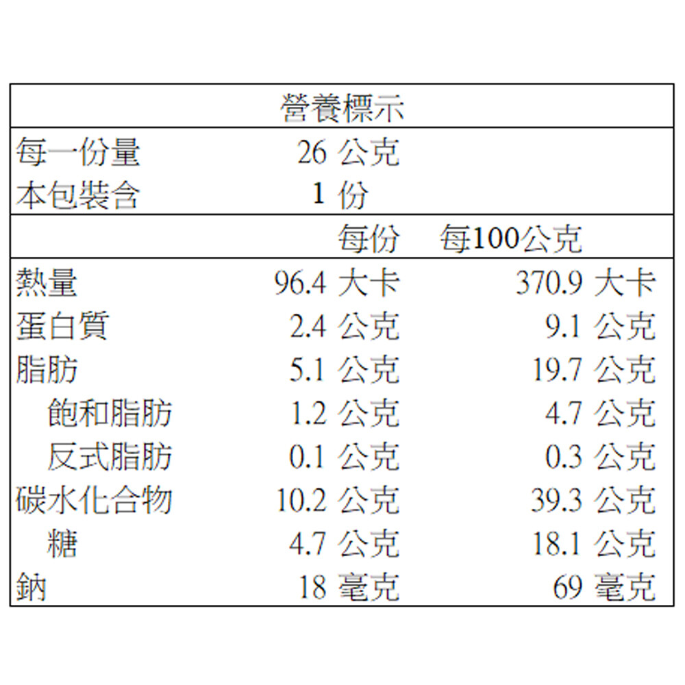 原味綠豆冰糕:綠豆沙(綠豆仁、砂糖、大豆沙拉油、海藻糖)、紅豆粒餡(小紅豆、砂糖)、大豆沙拉油、鹽。