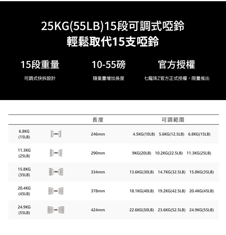 七龍珠Z 25kg(55LB)15段重量 可調式啞鈴(達爾款) x1