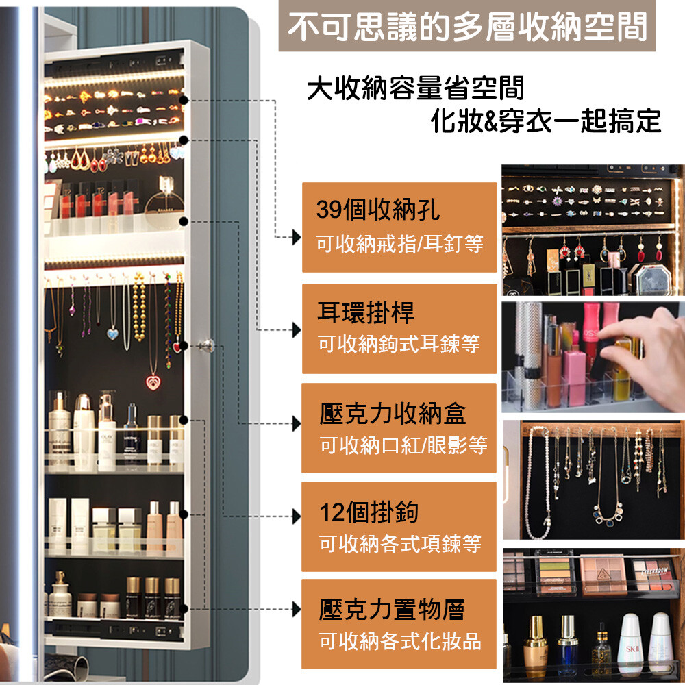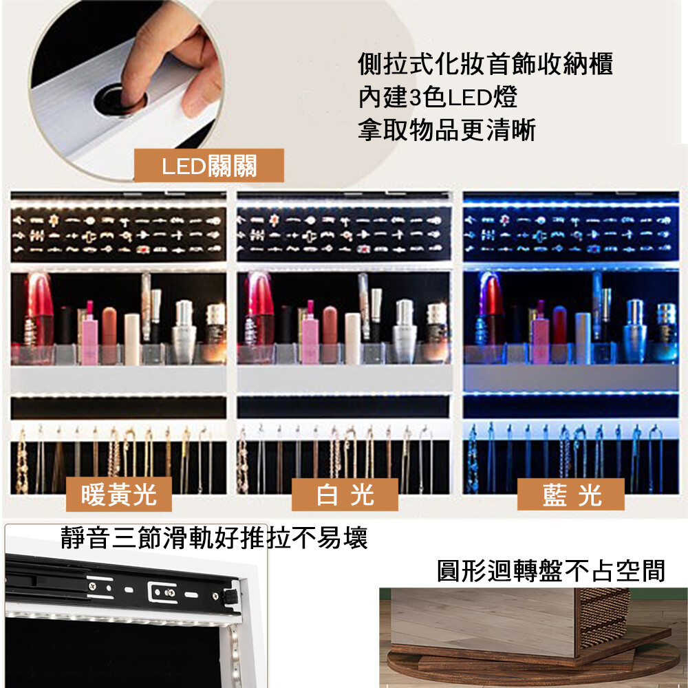 • 提供寬敞的珠寶和化妝品收納空間