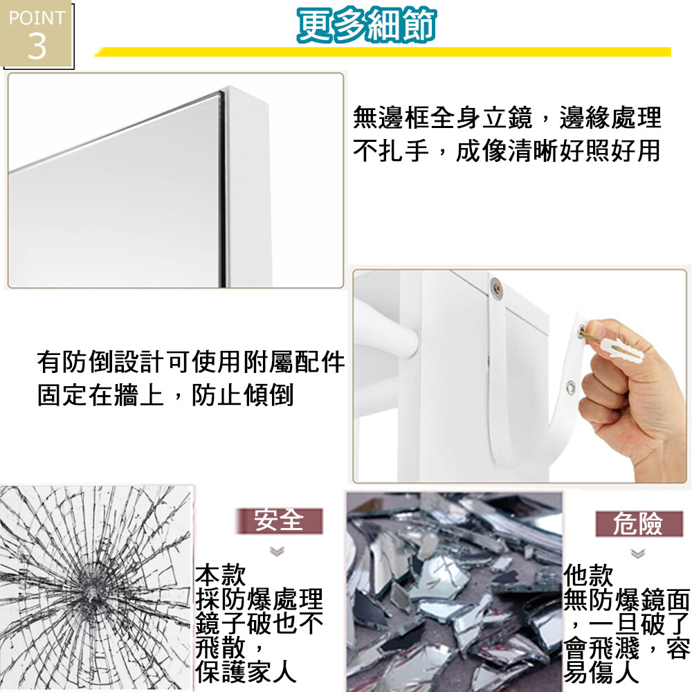 • 高畫質全身鏡,無框設計,外觀簡潔