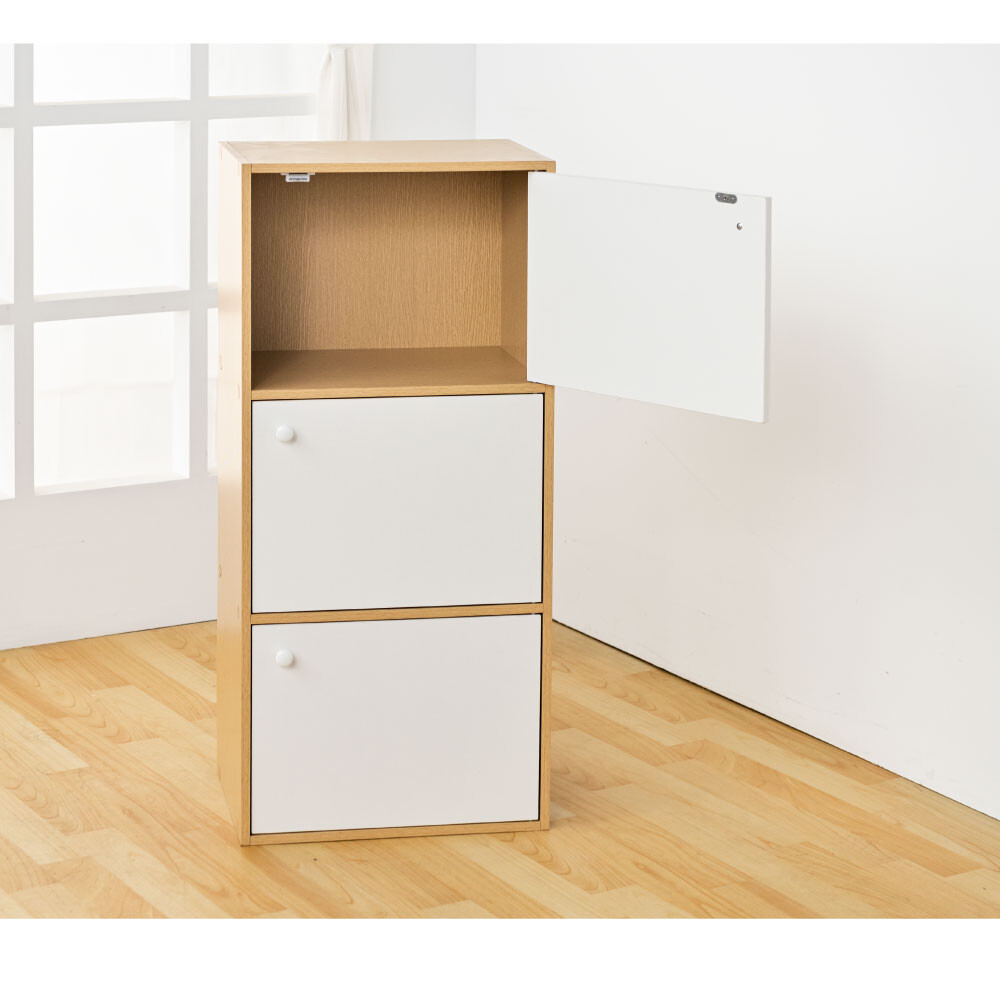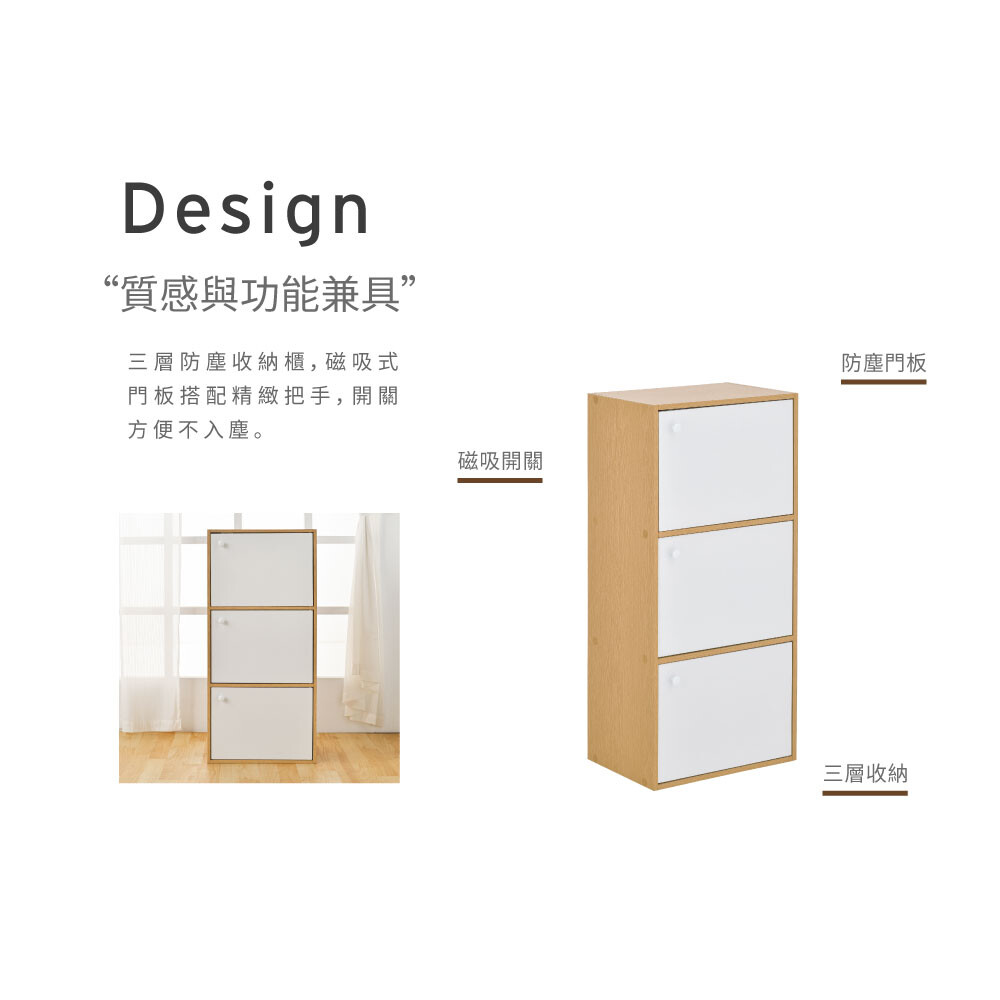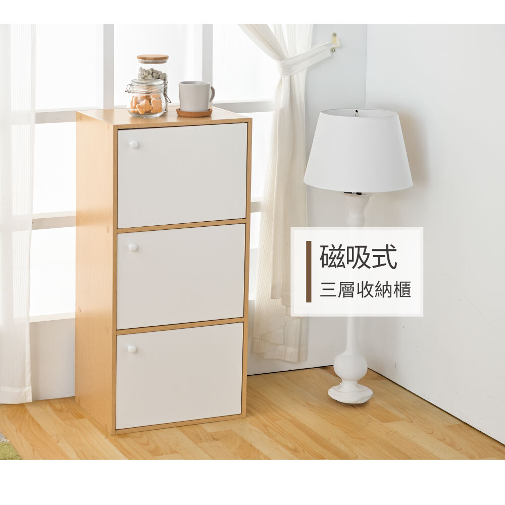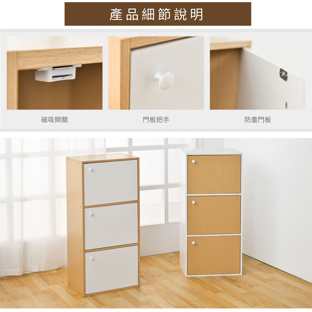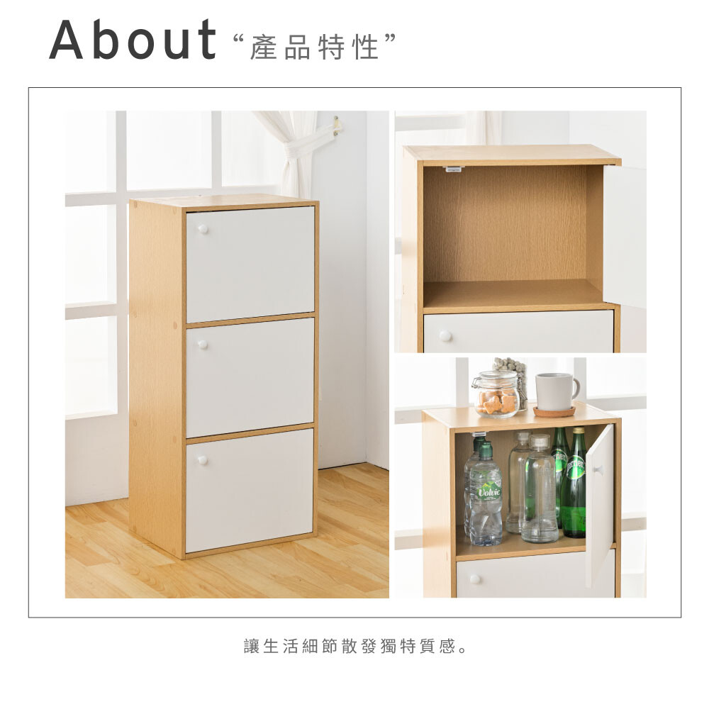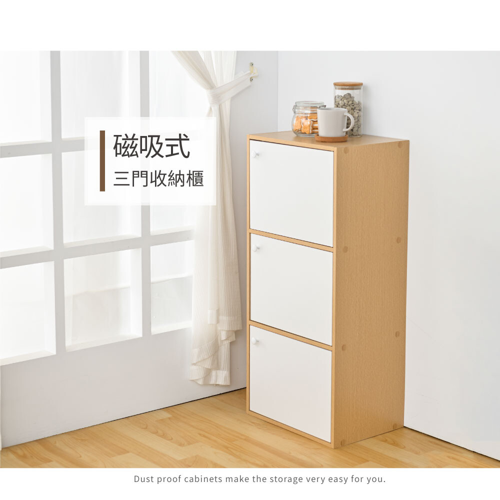 【ikloo】簡約木紋三門收納櫃/置物櫃 (圓型手把)BCF32