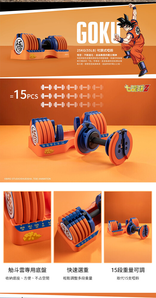 七龍珠Z 25kg(55LB)15段重量 可調式啞鈴(悟空款+達爾款) x1