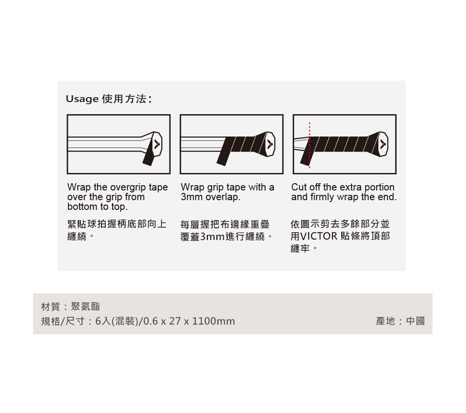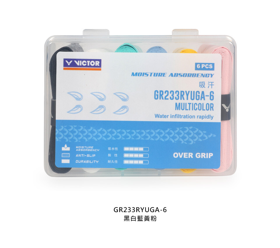 VICTOR 外握把布-混色6條裝-羽毛球拍 羽球拍 勝利 黑白藍黃粉