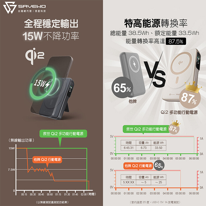 ➣高轉換率︰優秀的能源轉換率(高達87%),相比同類產品提供更多實際可用電量