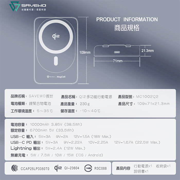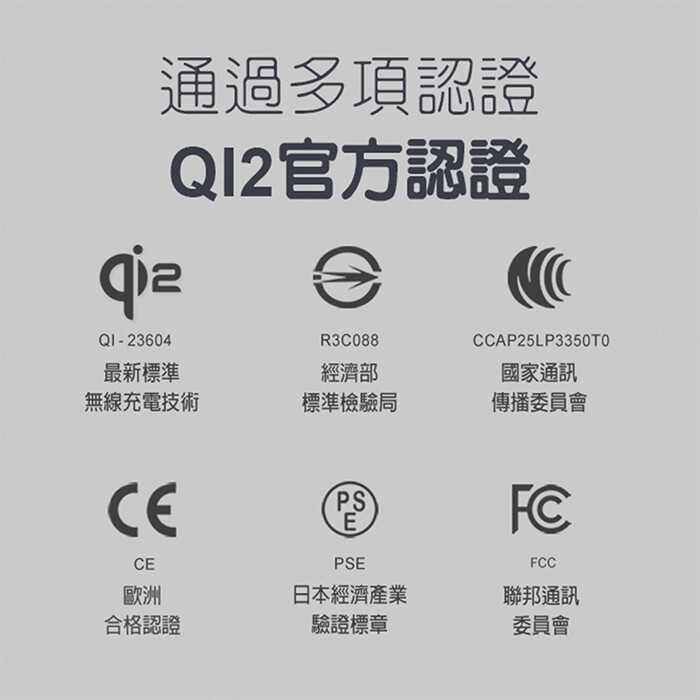➣嚴格認證︰通過 Qi2/BSMI/NCC/PSE/CE/FCC/UN38.3/Rohs多項認證(香港機電署認可的實驗室測試及認證)