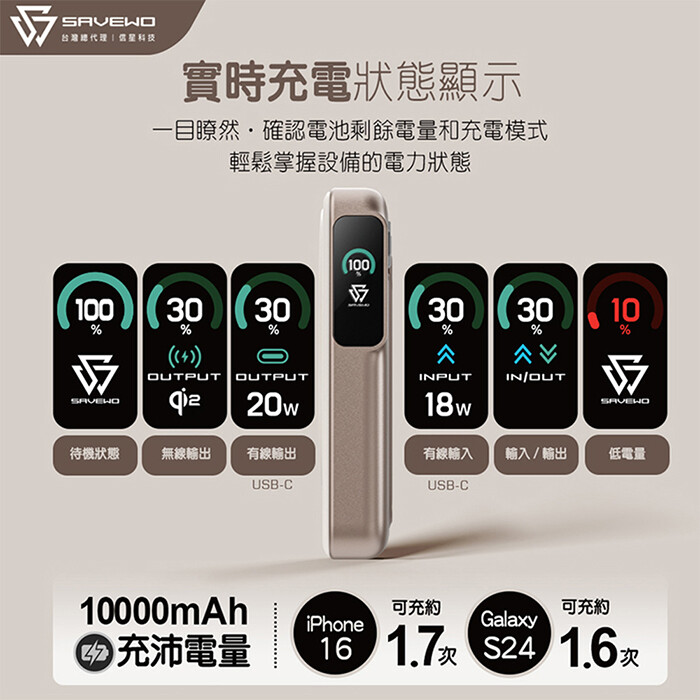 ➣即時顯示︰螢幕即時顯示電量及充電速度