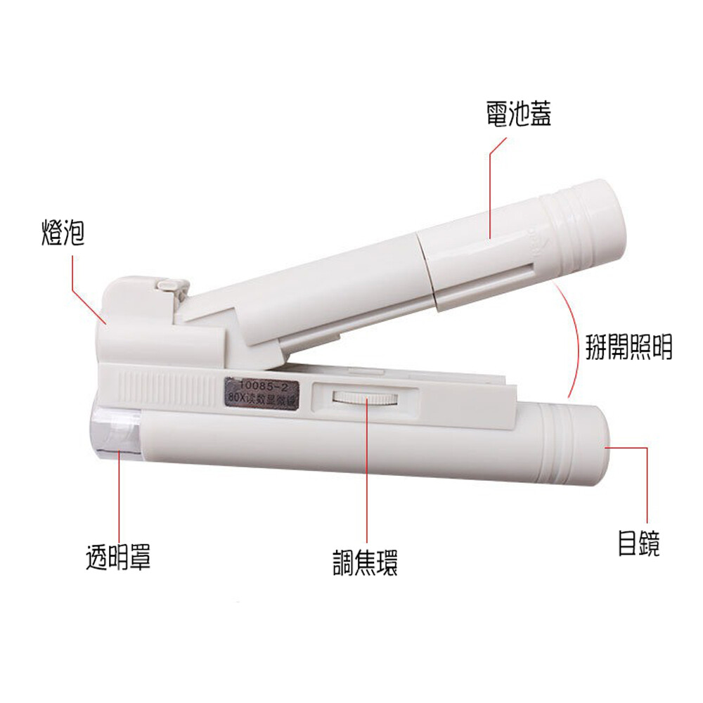 兩邊拉開電池盒部份燈就會亮,把觀察物放在防護罩中心,把眼睛對準目鏡,調節調焦齒輪,至看清為止。