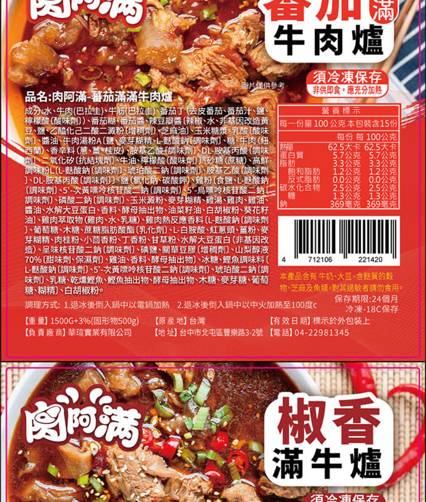 品名:蕃茄滿滿牛肉爐〈1500g/包〉
