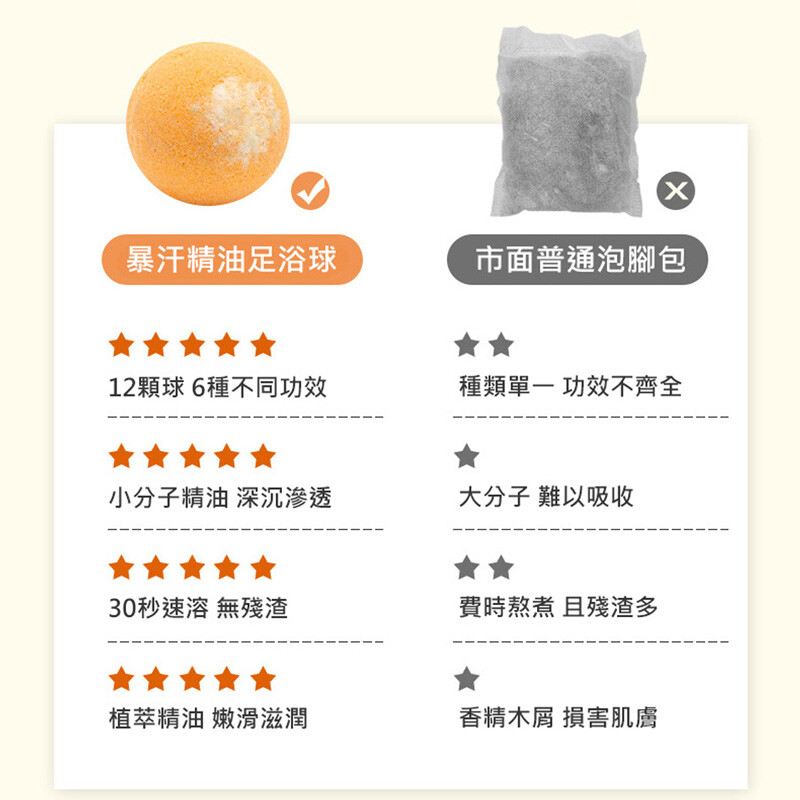 泡泡足浴球 氣泡足浴球 彩色植萃精油球 暴汗泡腳丸 足部水療浴 草本足浴 養生暖身 (12顆/盒)