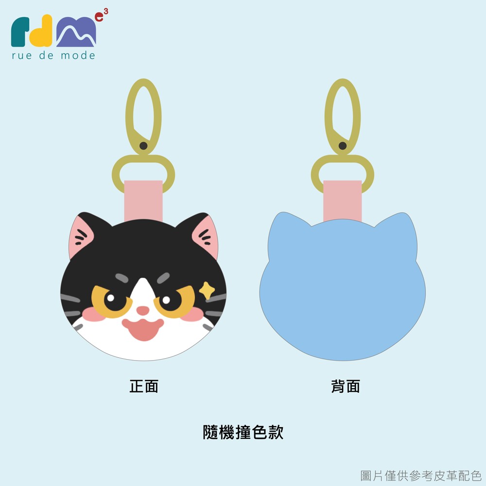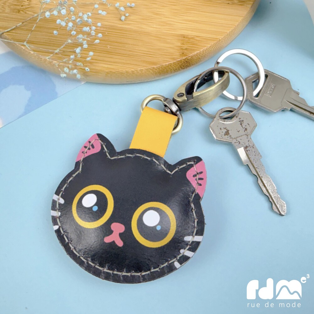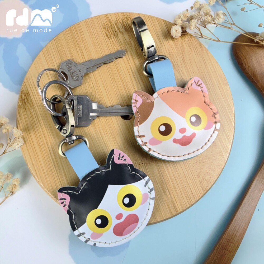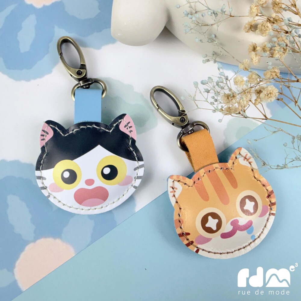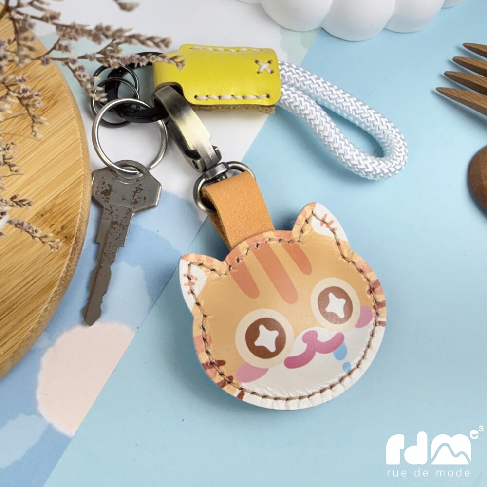 以可愛貓咪為靈感打造的印刷皮革鑰匙圈,由插畫家親自繪製角色造型,再由麥子庇護工場的身心障礙夥伴手工縫製完成。