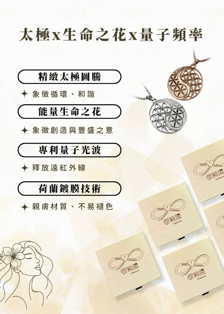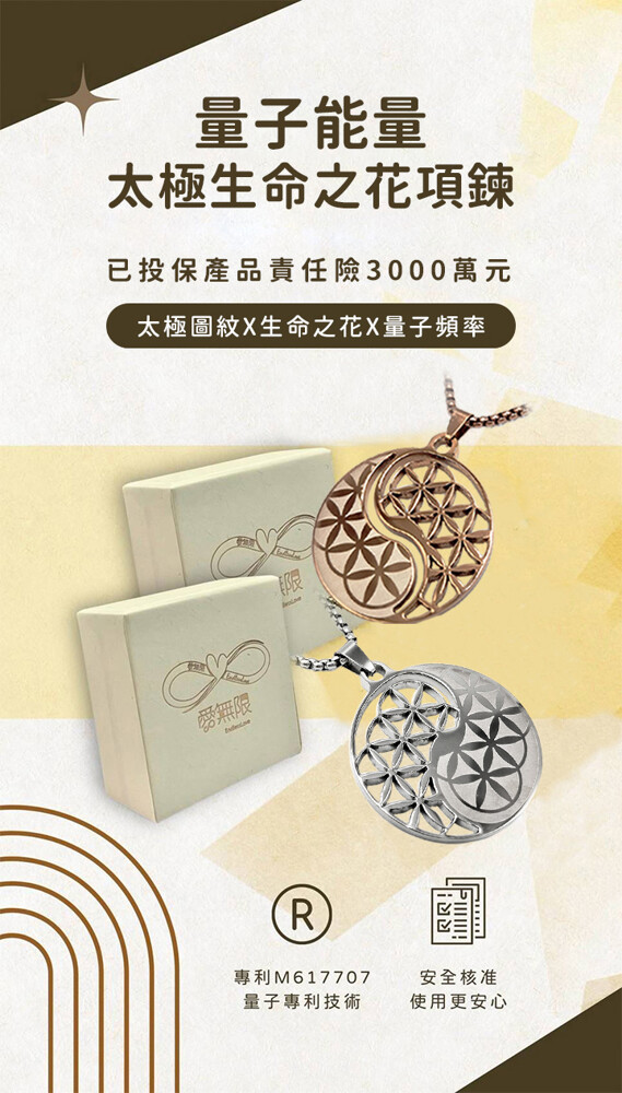 📣專利量子遠紅外線植入技術,平均放射率高達0.814,品質認證安心有保障!太極圖紋X生命之花X量子頻率,安全核准,配戴更安心。