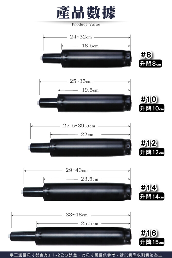 #8(升降行程約 8 cm/總長約 24–32cm)