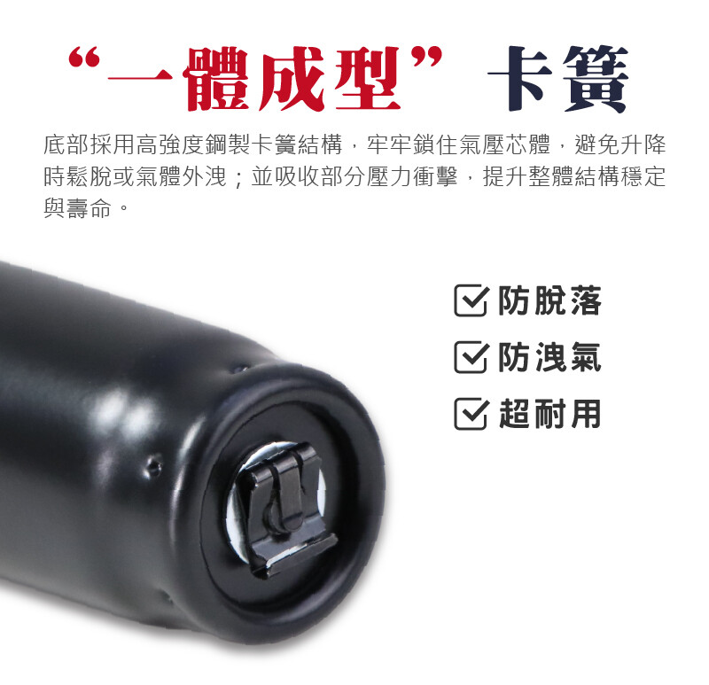 採用高強度金屬一體鑄造,耐久度遠勝一般氣壓棒: