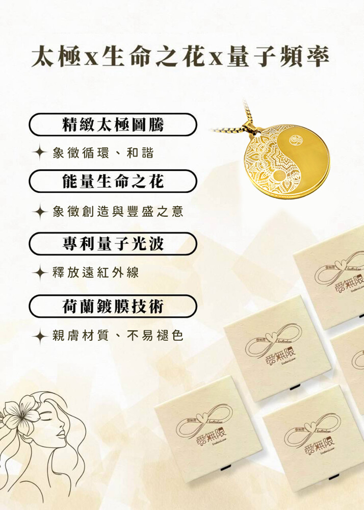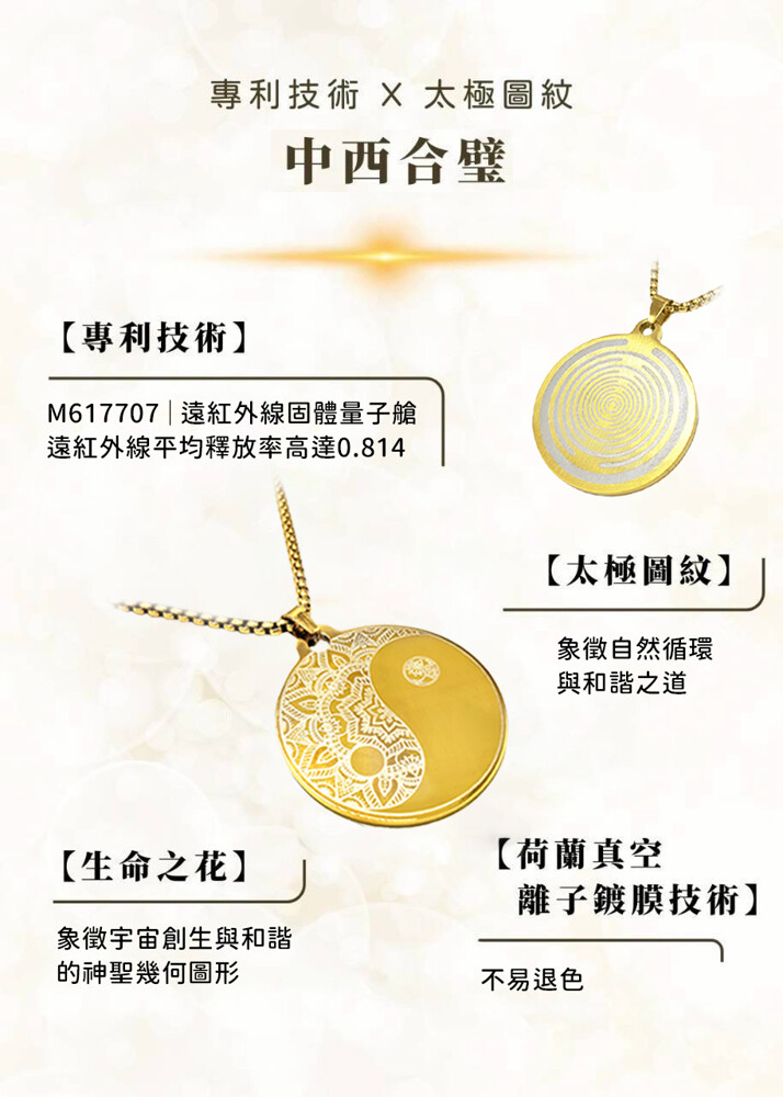 📣專利量子遠紅外線植入技術,平均放射率高達0.814,品質認證安心有保障!太極圖紋X生命之花X量子頻率,安全核准,配戴更安心。