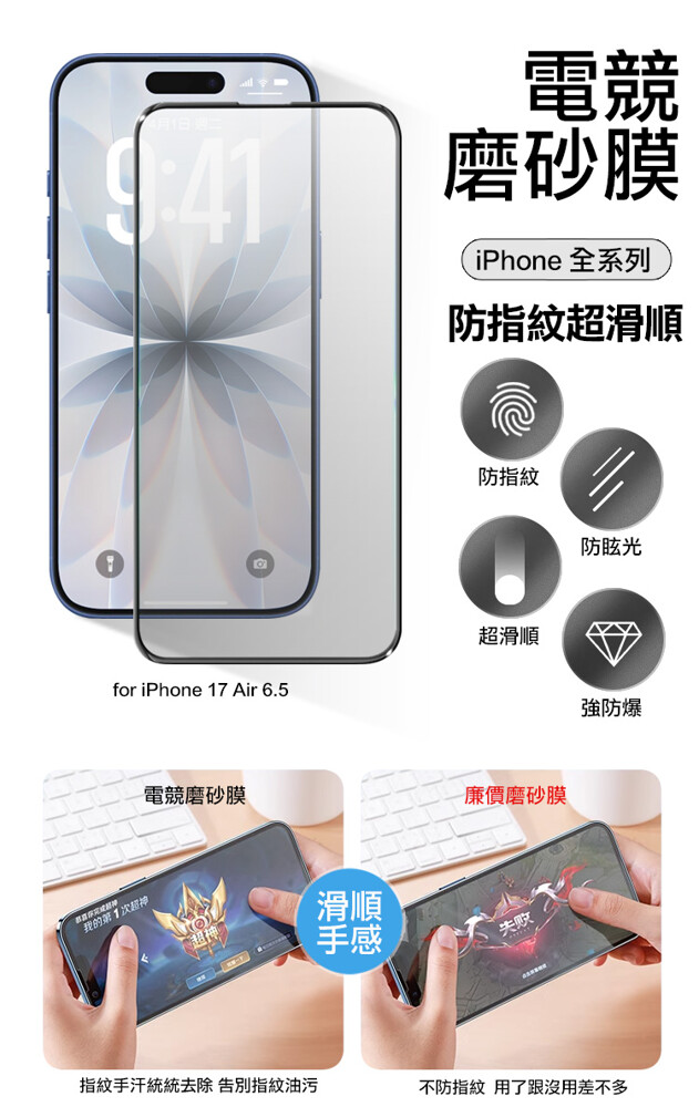 DAPAD iPhone 17 Air 6.5 電競磨砂防眩鋼化玻璃保護貼