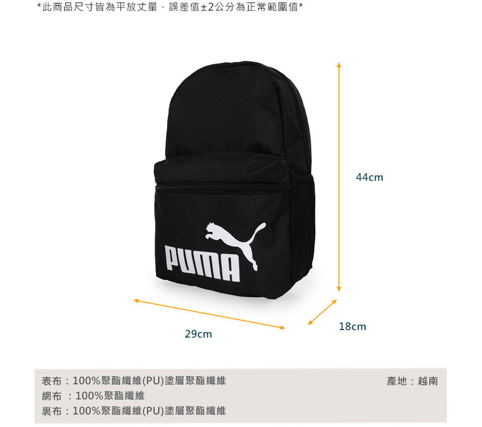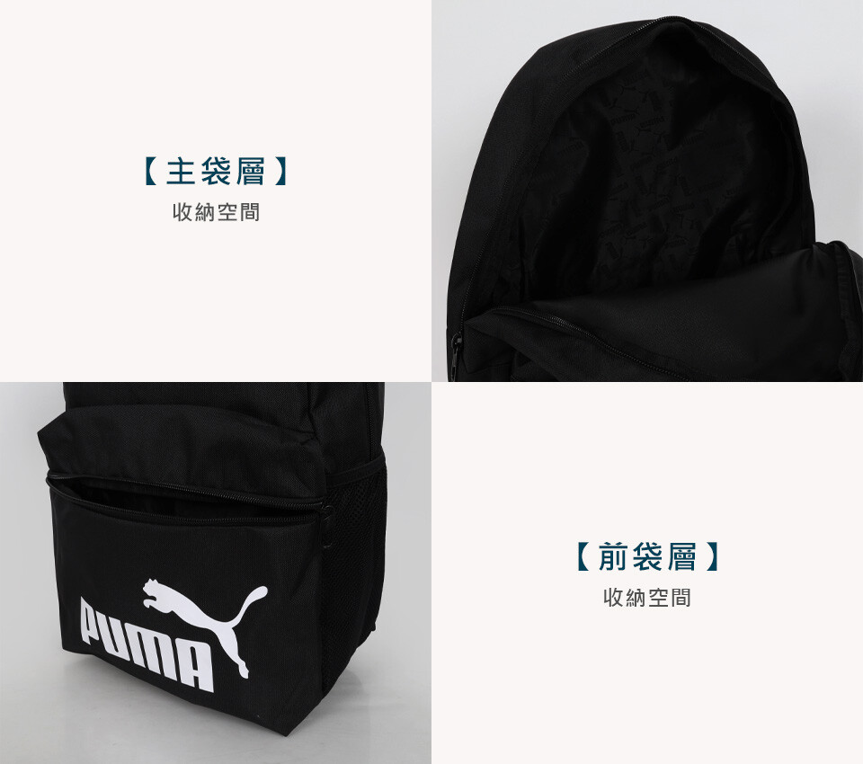 PUMA PHASE後背包-雙肩包 肩背包 旅行包 黑白