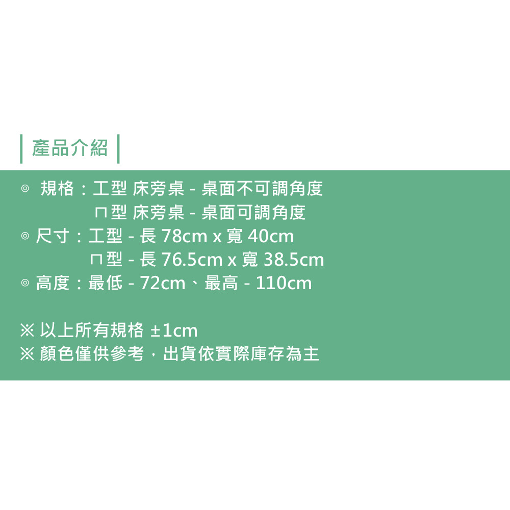 工型 床旁桌 桌面不可調角度 、
