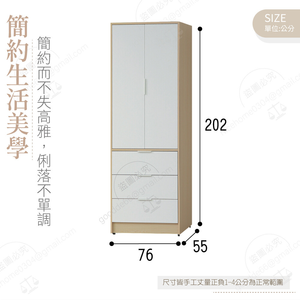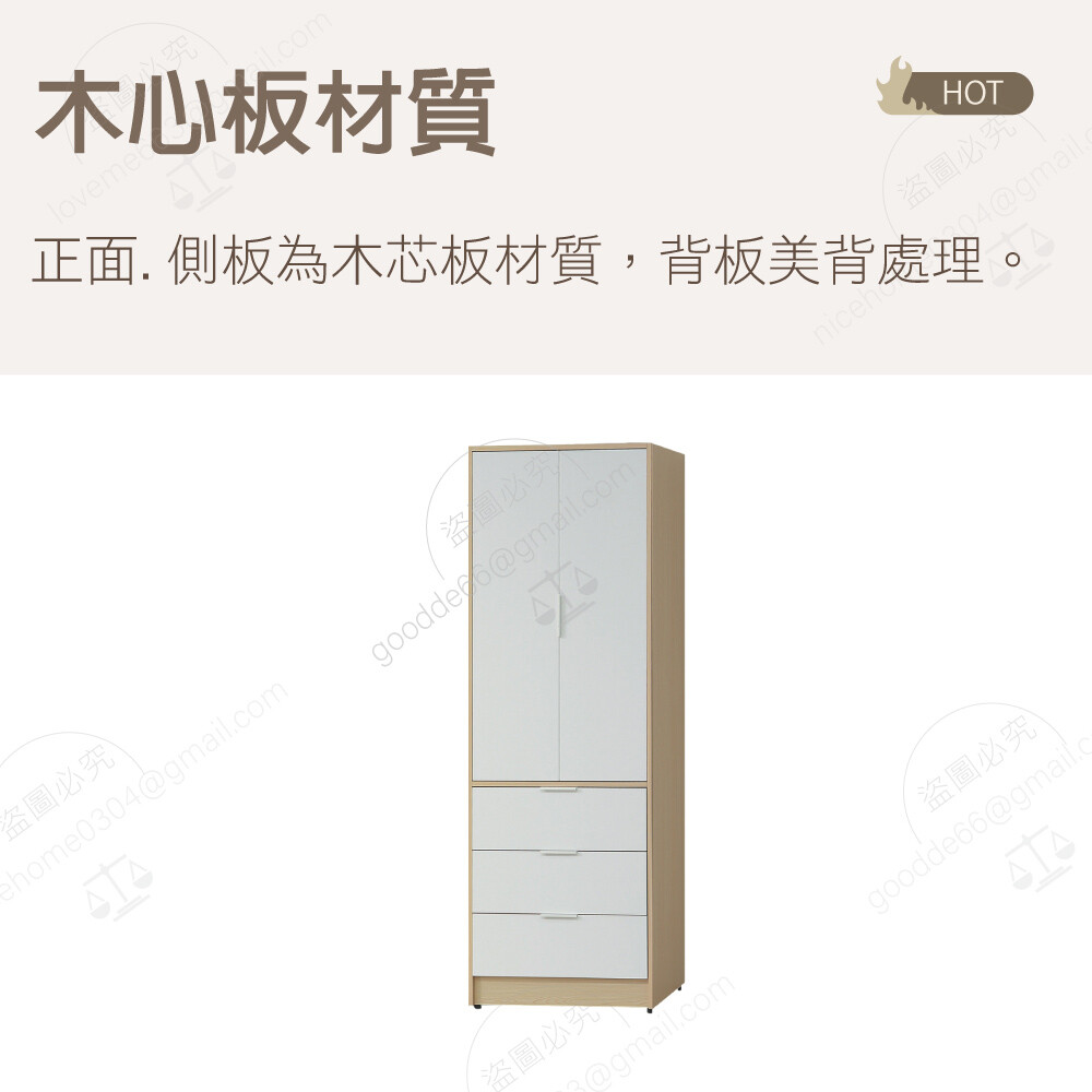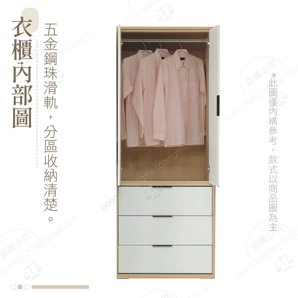 《奈斯家具Nice》148-04-HG 原木雙色2.5尺直桶三抽衣櫥/衣櫃