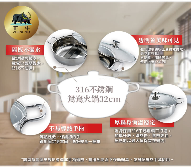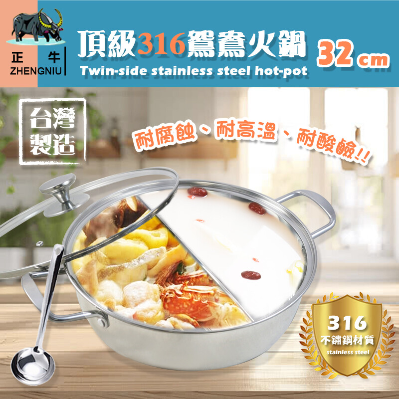 ◆品名:正牛頂級316不銹鋼鴛鴦火鍋32cm