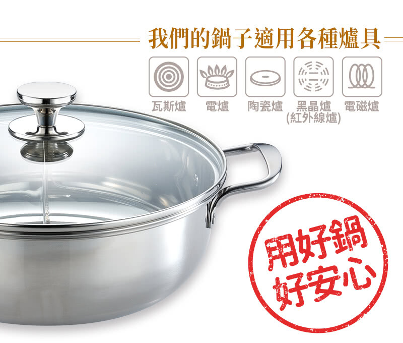 ◆適用爐具:瓦斯爐、電爐、鹵素爐、陶瓷爐、黑晶爐及電磁爐,不適用微波爐