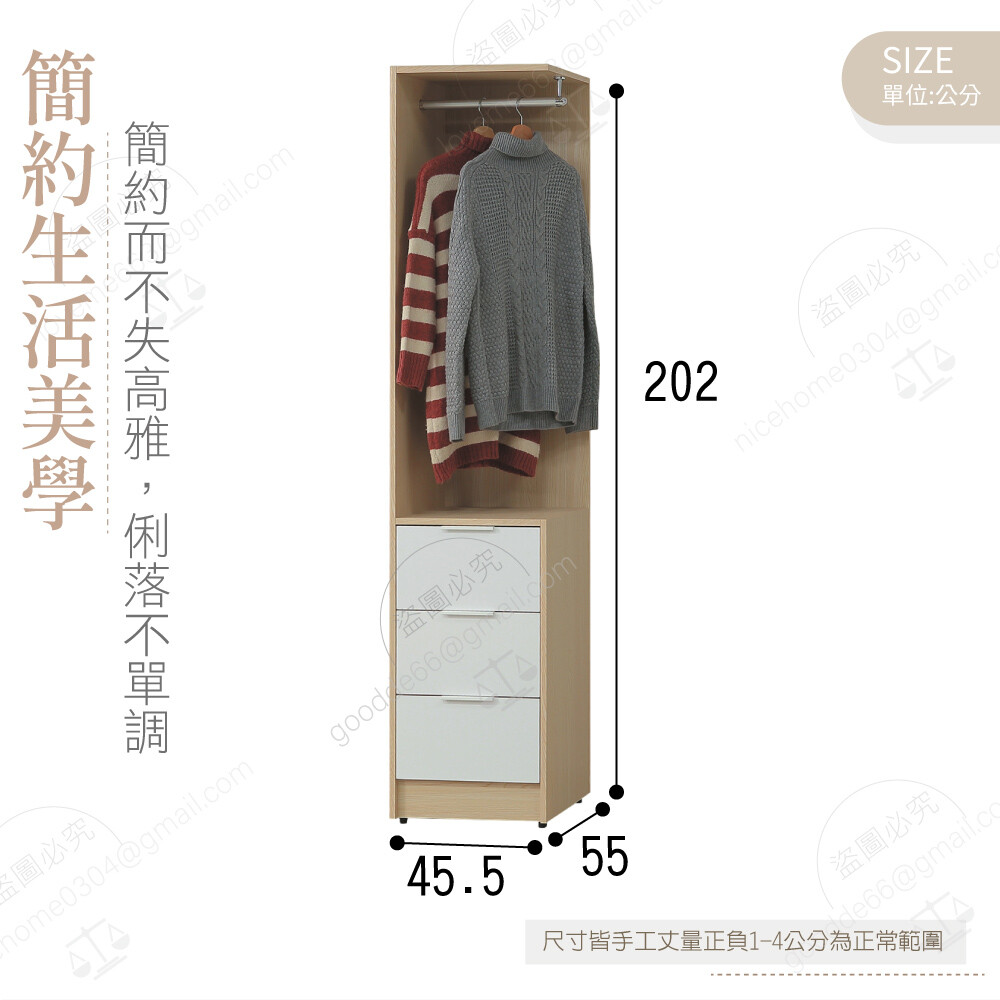《奈斯家具Nice》147-07-HG 原木雙色1.5尺轉角櫃三抽