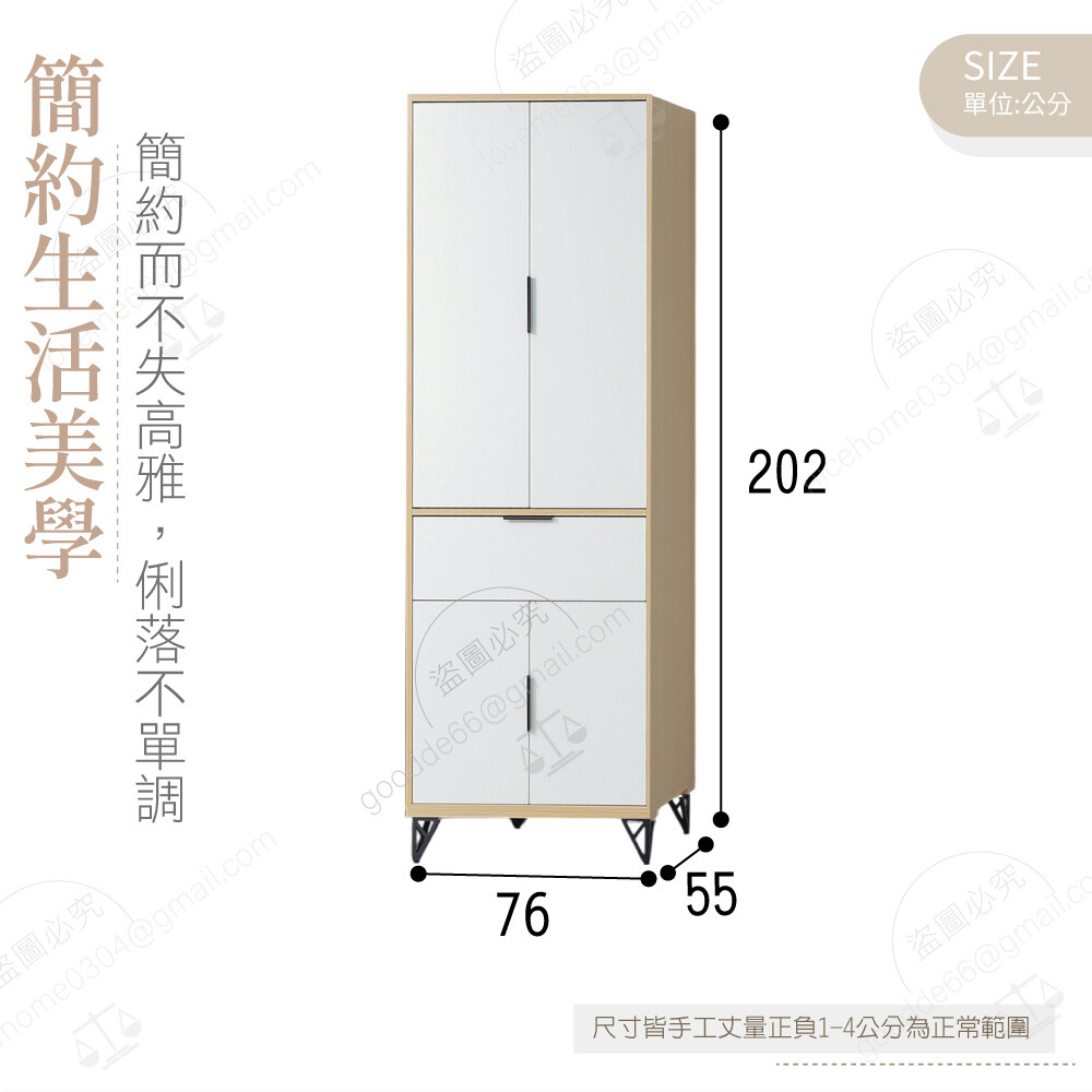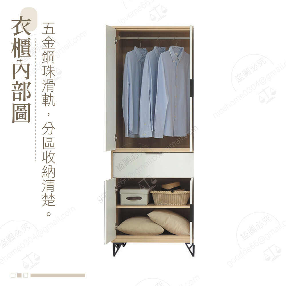 《奈斯家具Nice》150-02-HG 原木雙色鐵腳2.5尺直桶四門一抽衣櫥/衣櫃