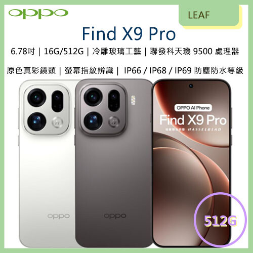 #公司貨 #OPPO #FindX9Pro #6.78吋 #16G/512G #2億哈蘇影像旗艦 #IP66/IP68/IP69防塵防水等級 #聯發科天璣9500處理器 #AI助理 #智慧型手機