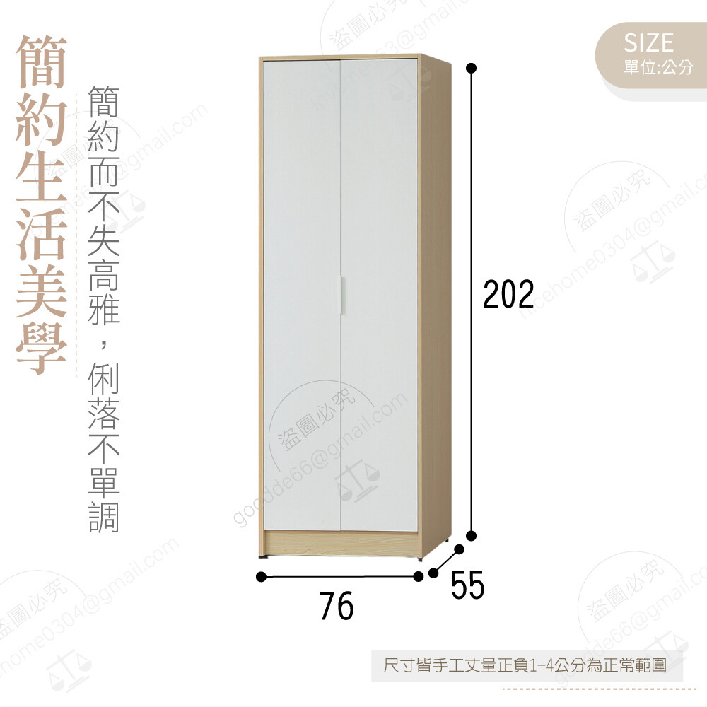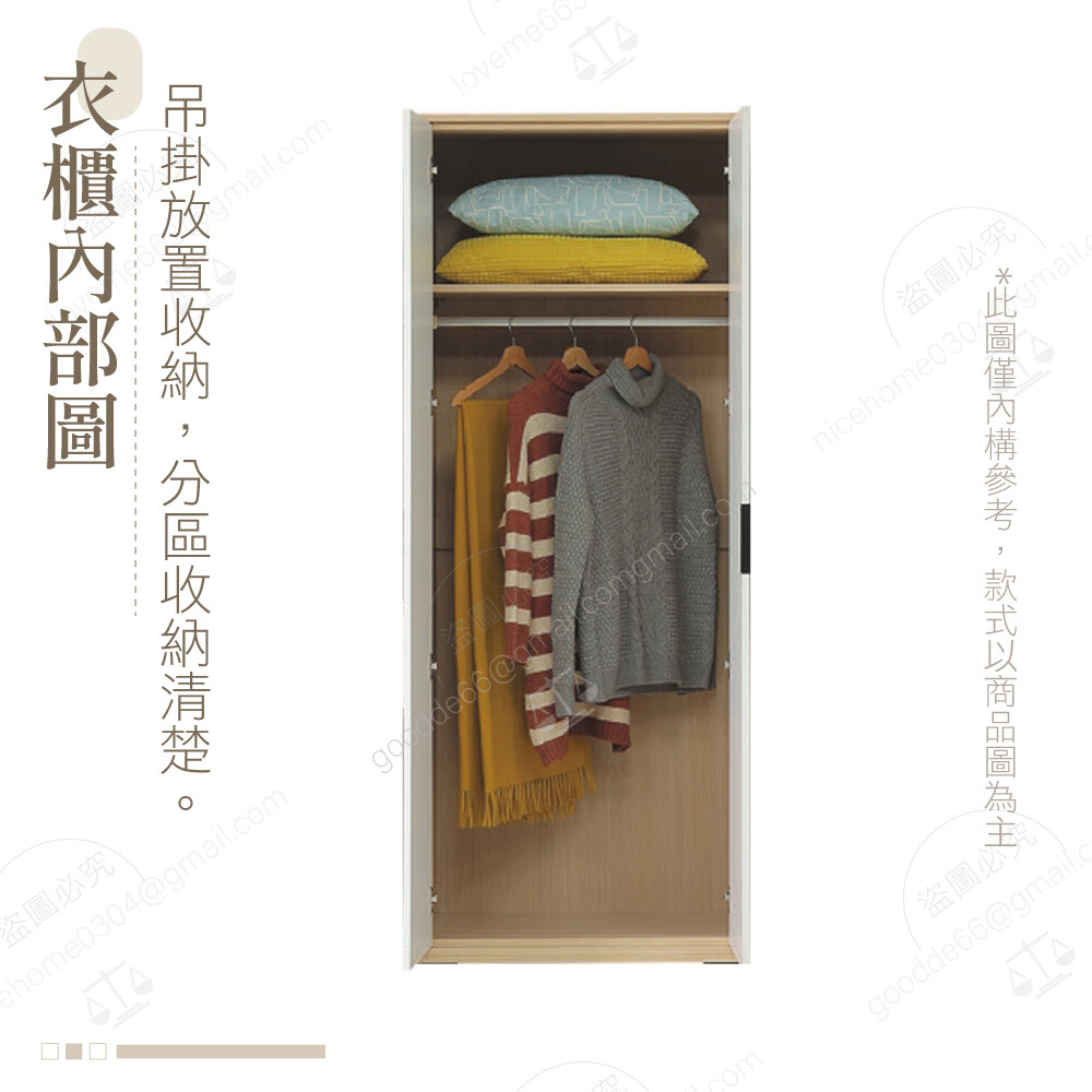 《奈斯家具Nice》148-03-HG 原木雙色2.5尺直桶單吊被櫥衣櫥/衣櫃